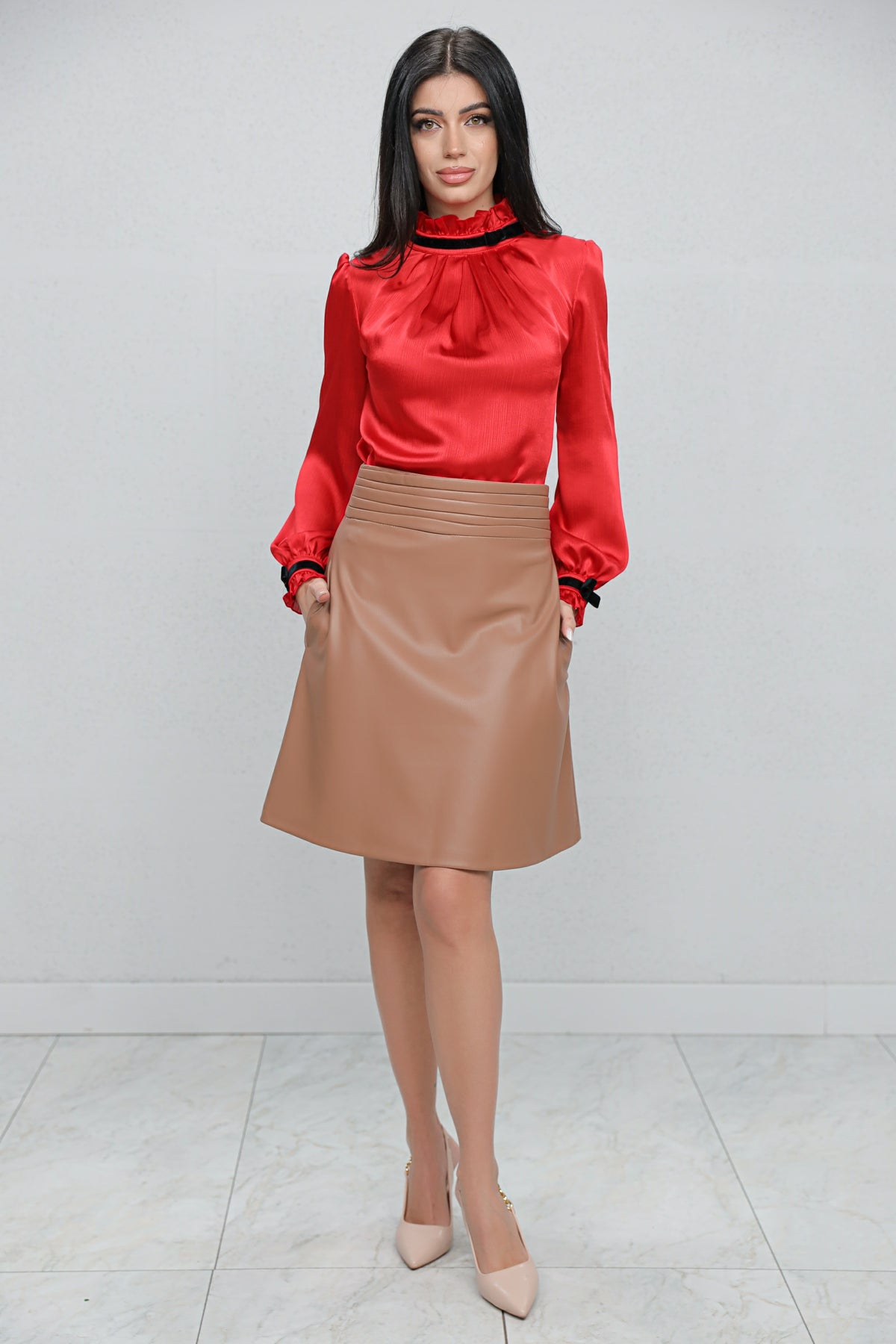 Fusta MBG bej din piele ecologica cu talie inalta si pliuri