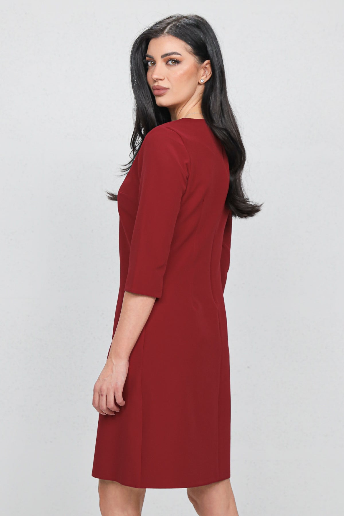 Rochie MBG Burgundy Midi cu Funda Decorativa pe Umar