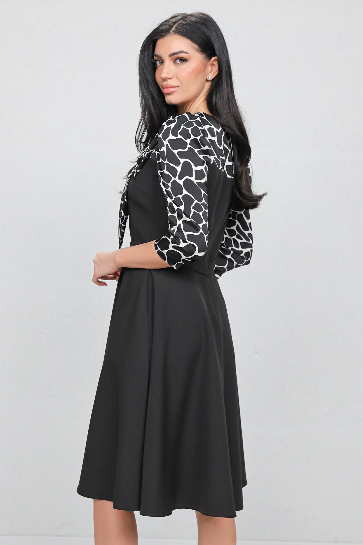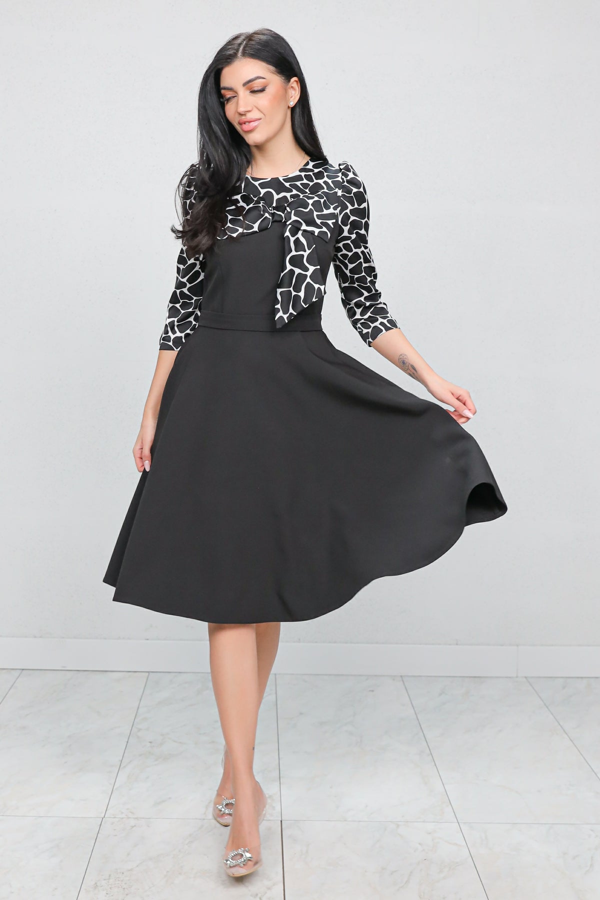 Rochie MBG Neagra Midi Eleganta cu Imprimeu Contrast