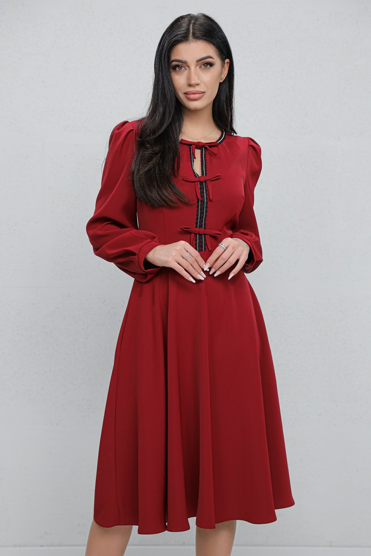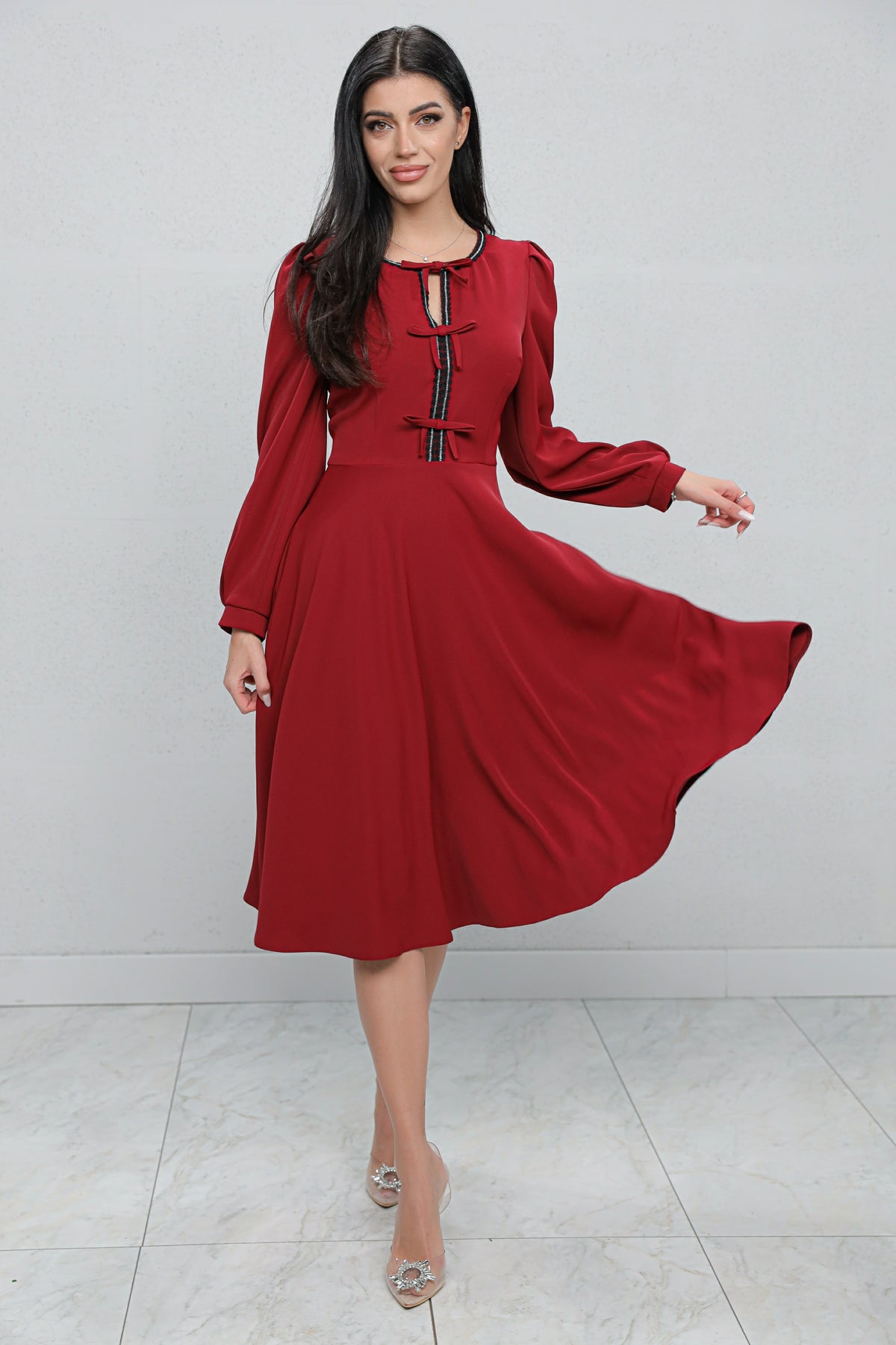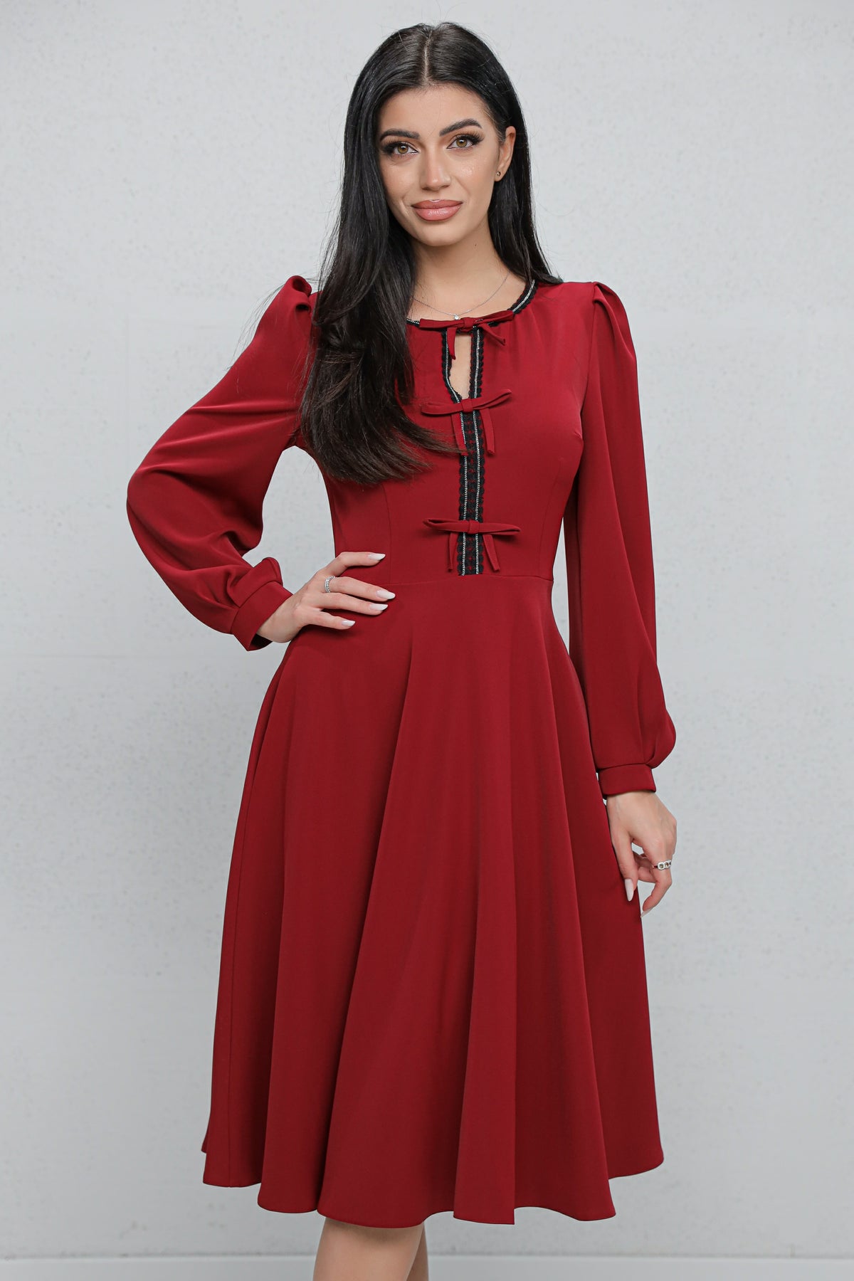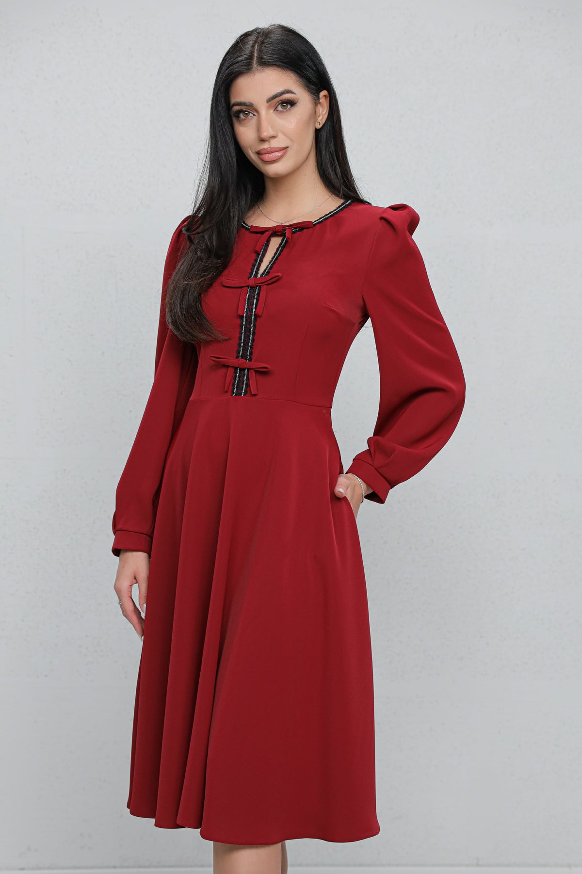 Rochie MBG bordo cu bandă stilizată si fundite pe bust
