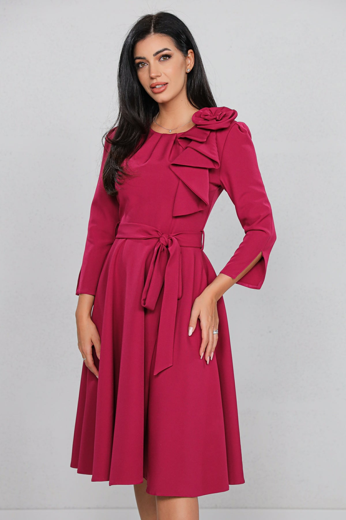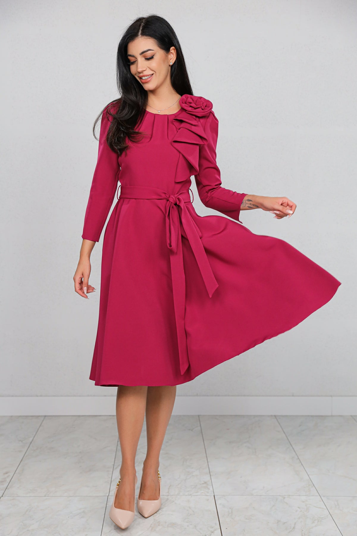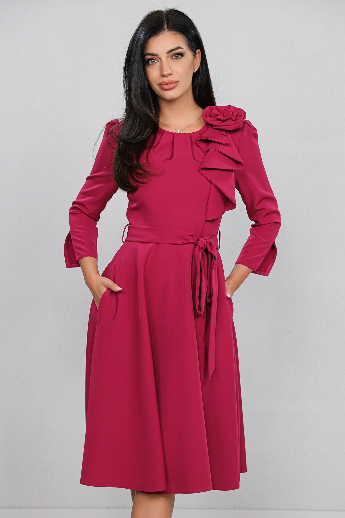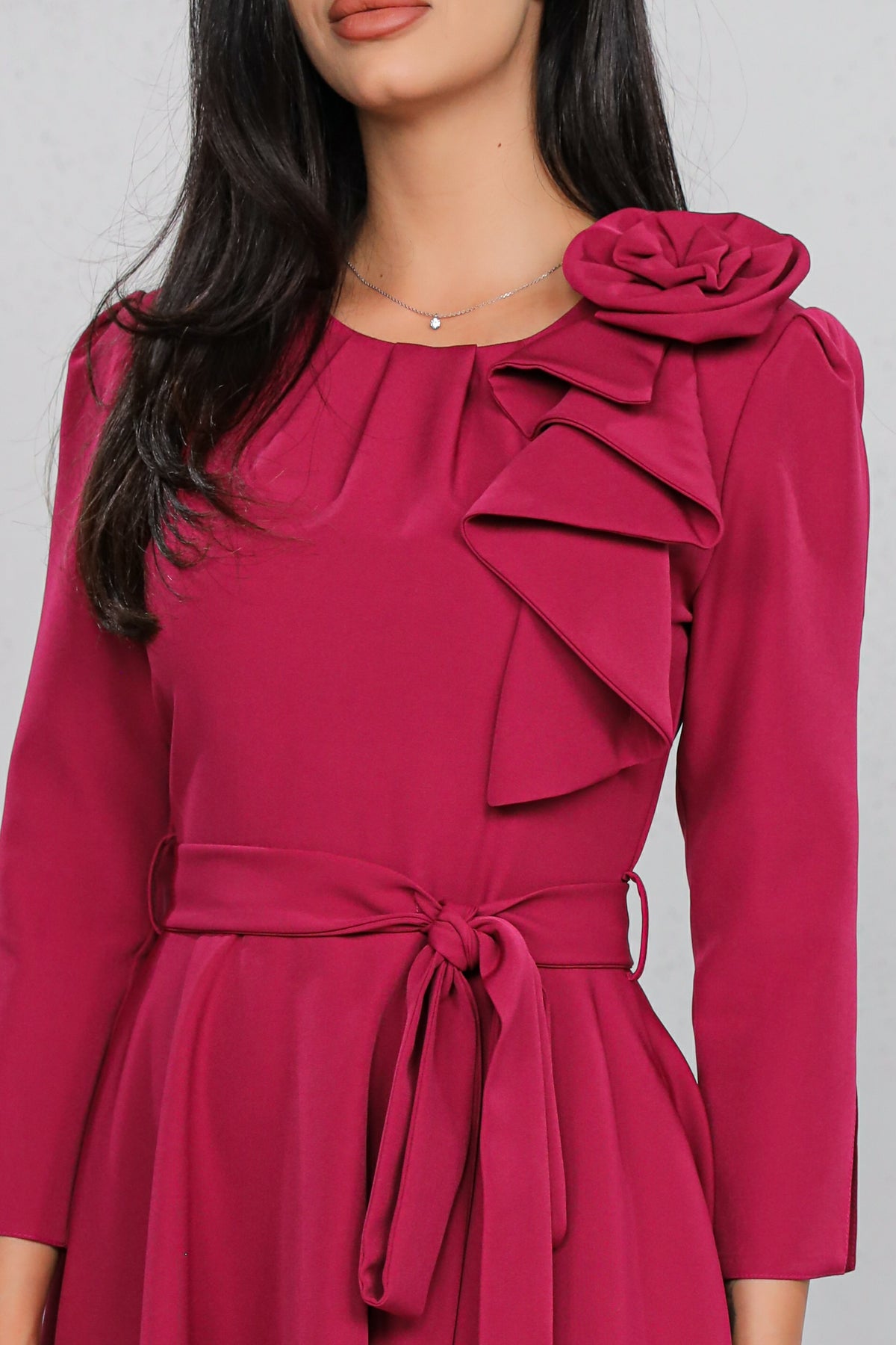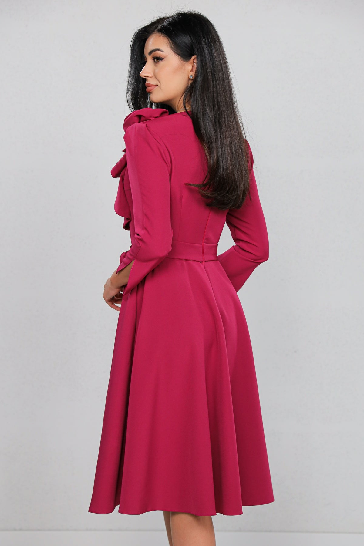 Rochie MBG Magenta cu Volan Aplicat și Cordon în Talie