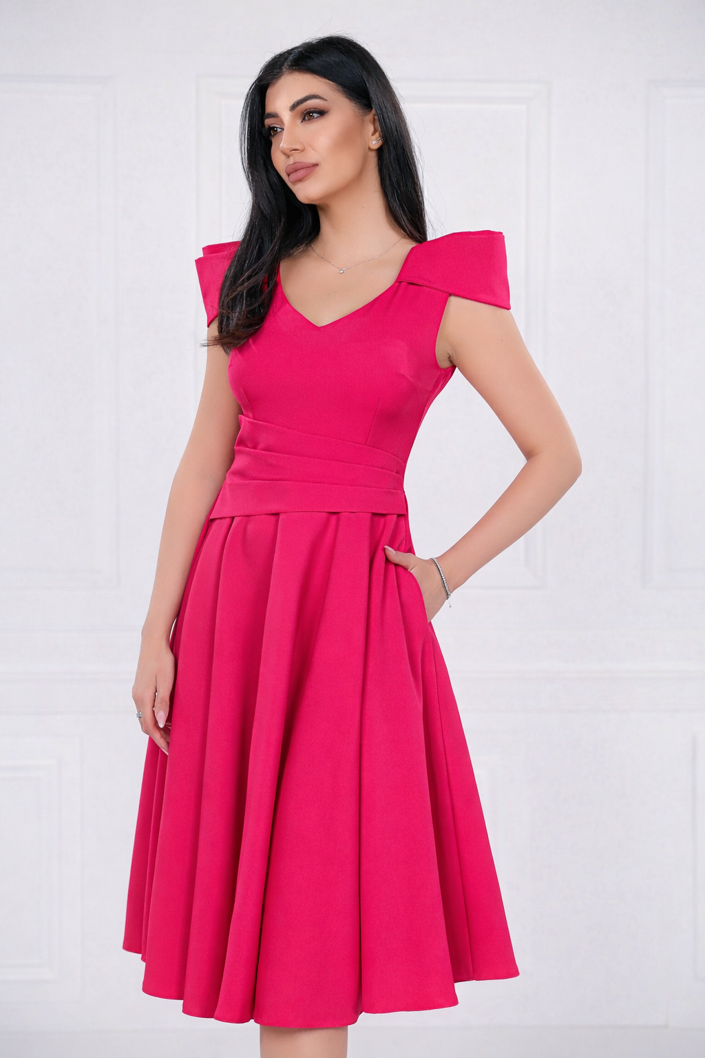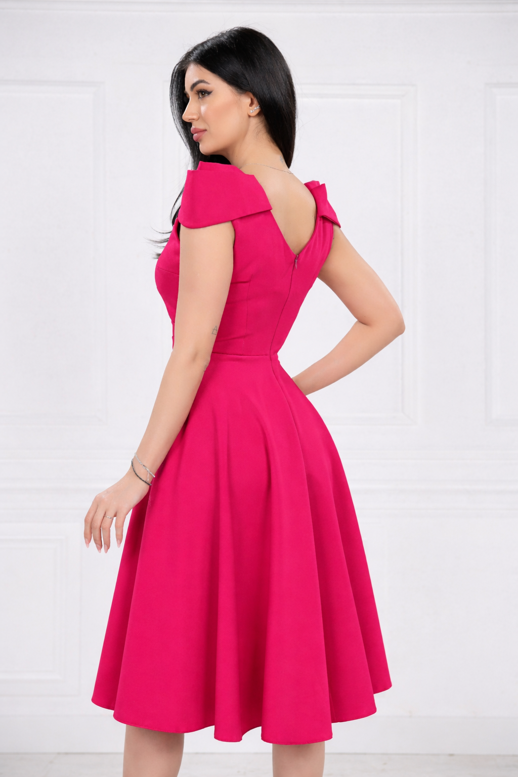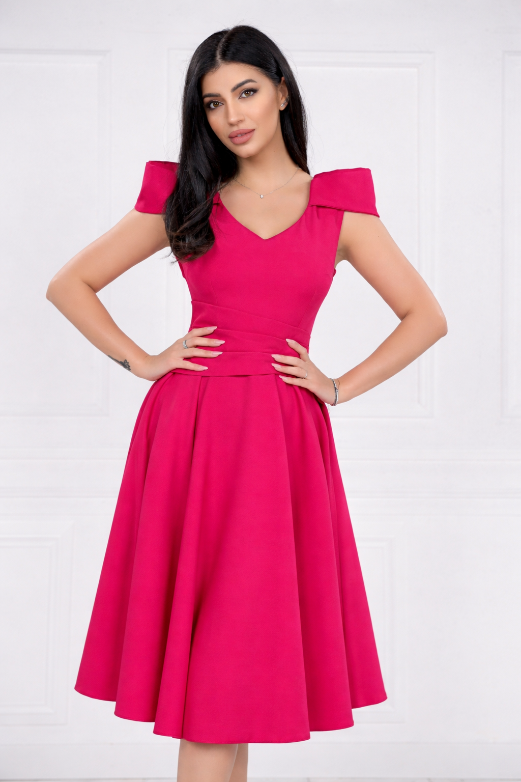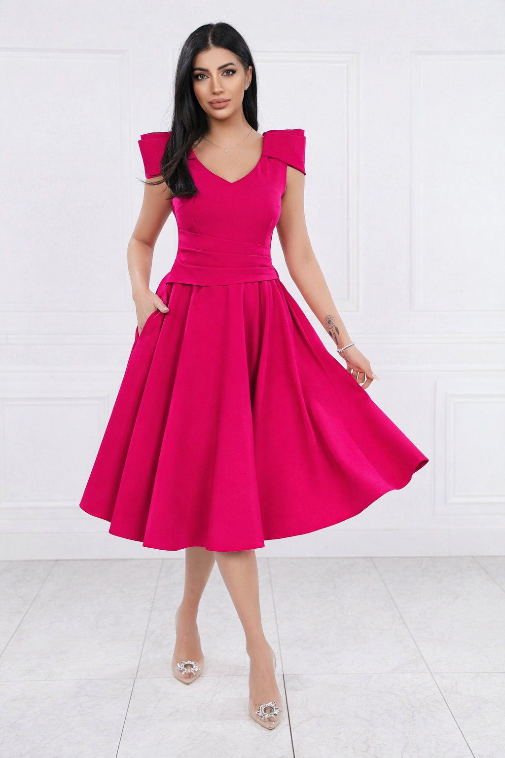 Rochie MBG magenta clos cu maneca din falduri