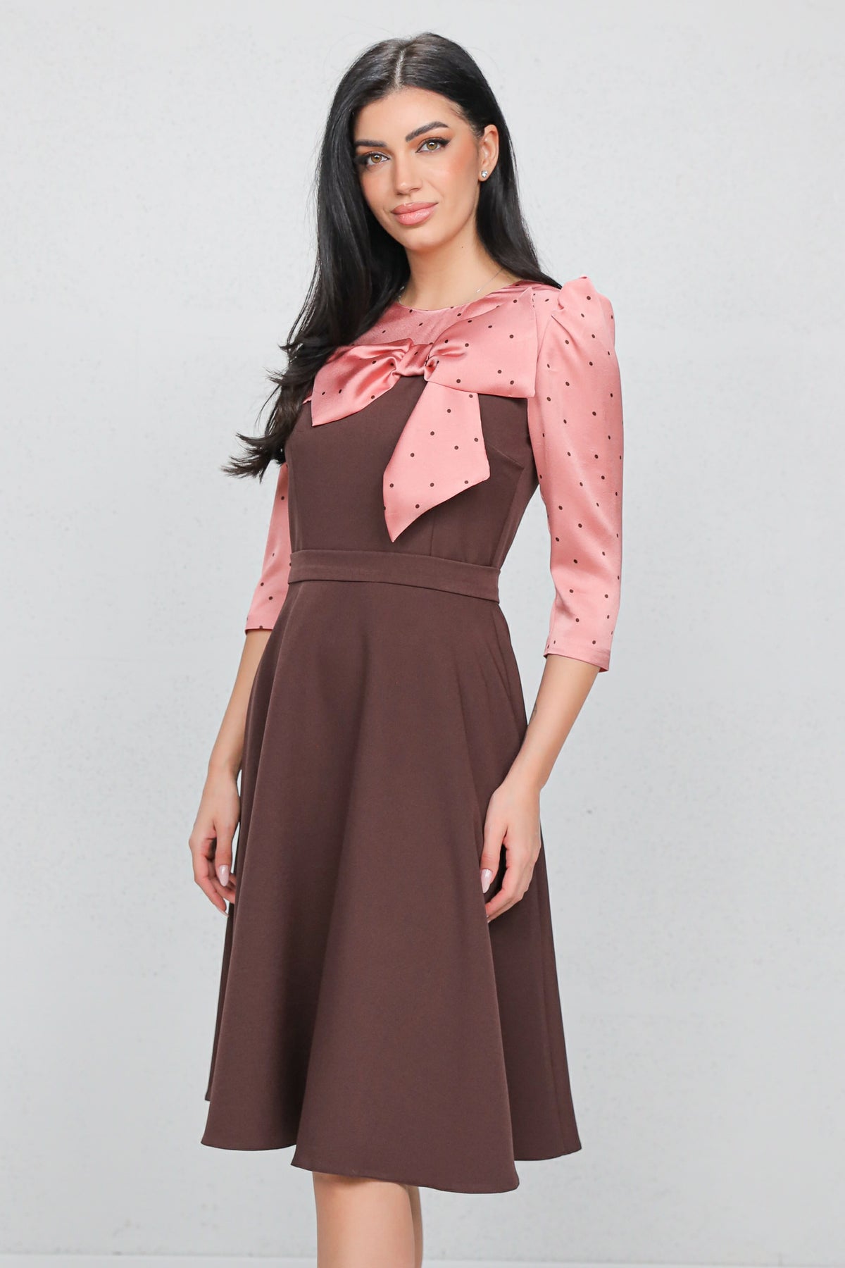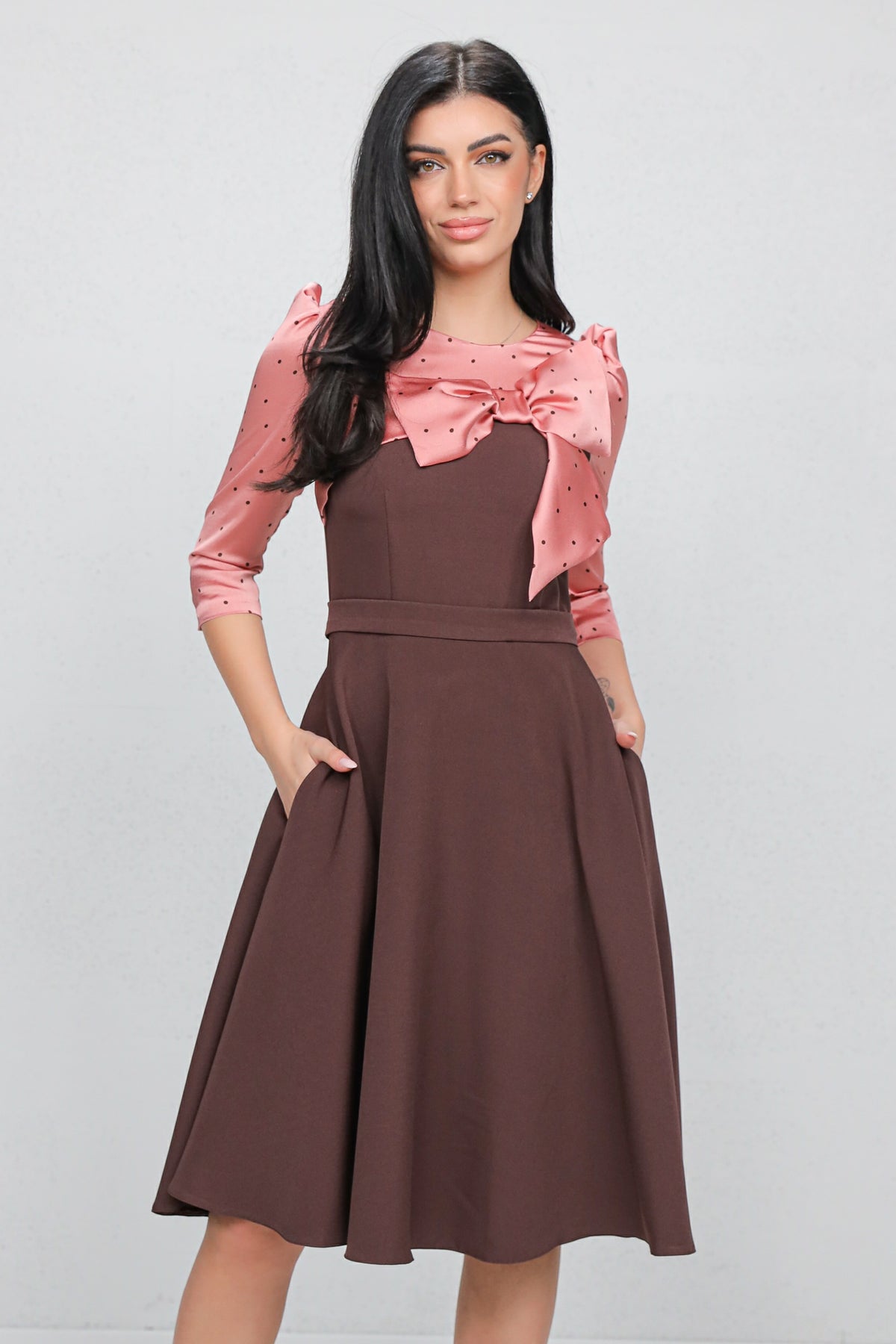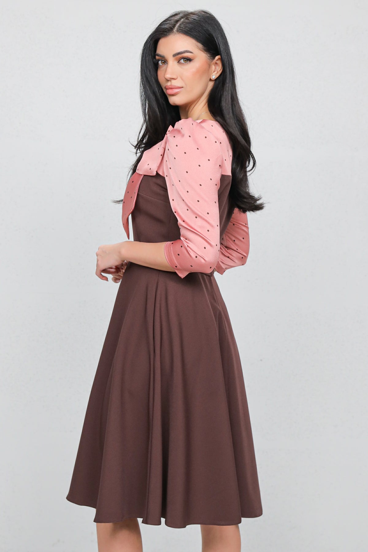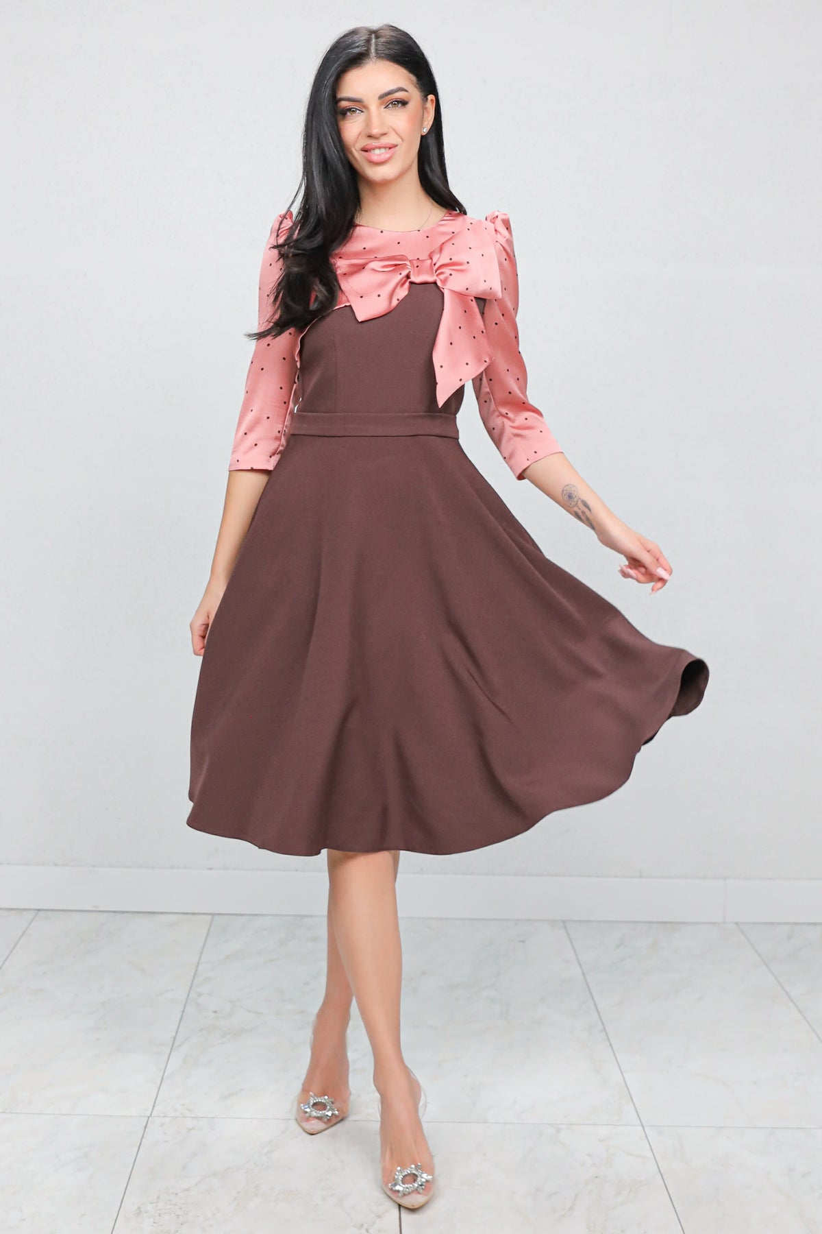Rochie MBG Maro Midi Eleganta cu Imprimeu Buline